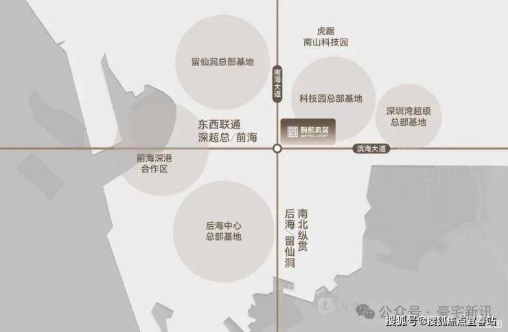 贵脉源点丨全维中心的奢居地标 翰熙典居占位深圳经济命脉滨海大道与南北科创主轴南海大道交汇处十字轴心。集萃城市区位、科创、人文、TOD四大中心源点。依托两大科技园、四大总部基地,集总部经济+全球科创中心价值,坐享区域发展利好。