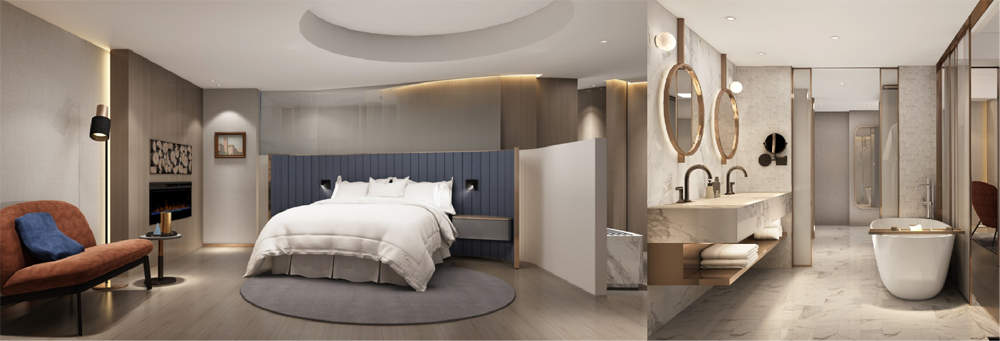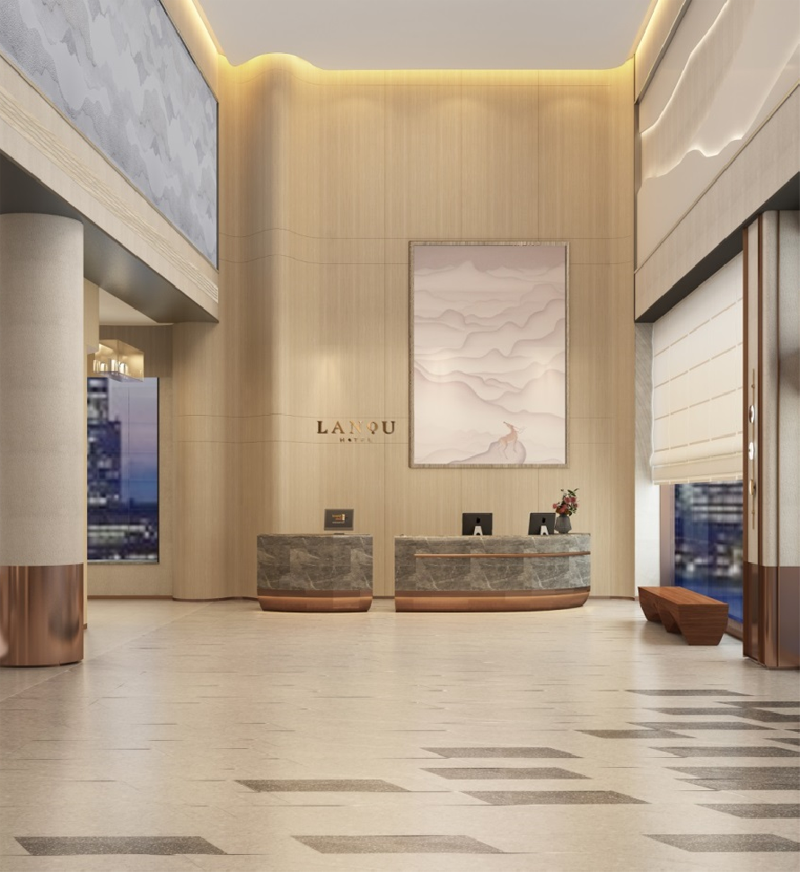 兰欧国际酒店以全球经典建筑与文艺为灵感源点,传递前瞻美学体验,酒店以温润中性色彩主导空间构造、缤纷跳跃的视觉张力为核心,将精致、温度、纯粹的欧陆生活融入当代艺术旅居生活。酒店拥有集合艺术美学馆、新零售、会客厅、咖啡吧于一体的多业态融合开放大厅,配备体贴入微的兰大使一站式尊荣服务,为用户打造更丰富的居住、休闲、出行旅居体验。在这里,抬头即可仰望“绿杨结烟垂袅风”,俯首亦可感受纯正欧陆式浪漫的雅致气息。