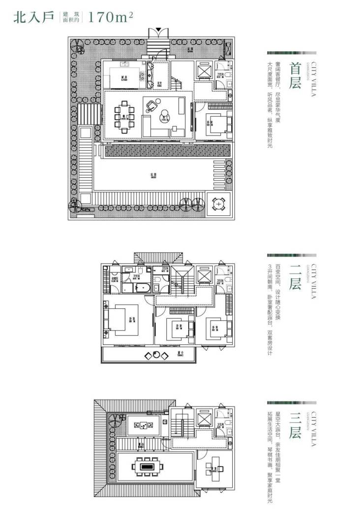 约90-160㎡前后花园,前庭养花,后院种树,点缀些许生活情趣,斟一壶茗茶,读一本闲书,邀几位好友小聚,午后时光亦会因此变得美好而缓慢。