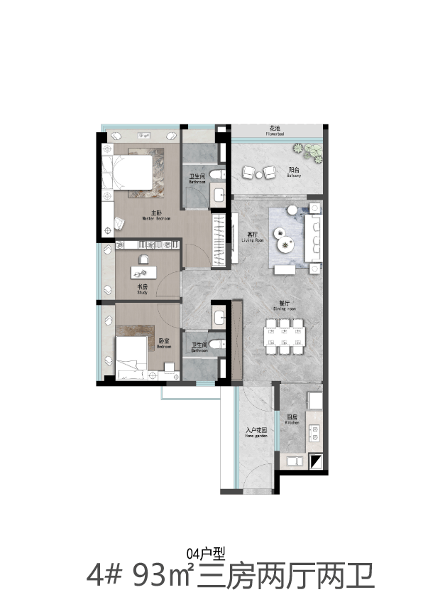 93㎡三房是刚需友好型户型,南北通透,总价约530万起,客厅与阳台相连保证了采光,两个卧室均带飘窗,空间利用率不错 。