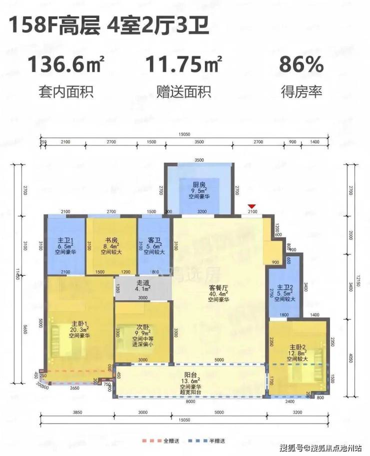 项目采用整体抬板设计,公区规划有恒温泳池、下沉庭院、会所、车马院、水系和全域风雨连廊等配置。