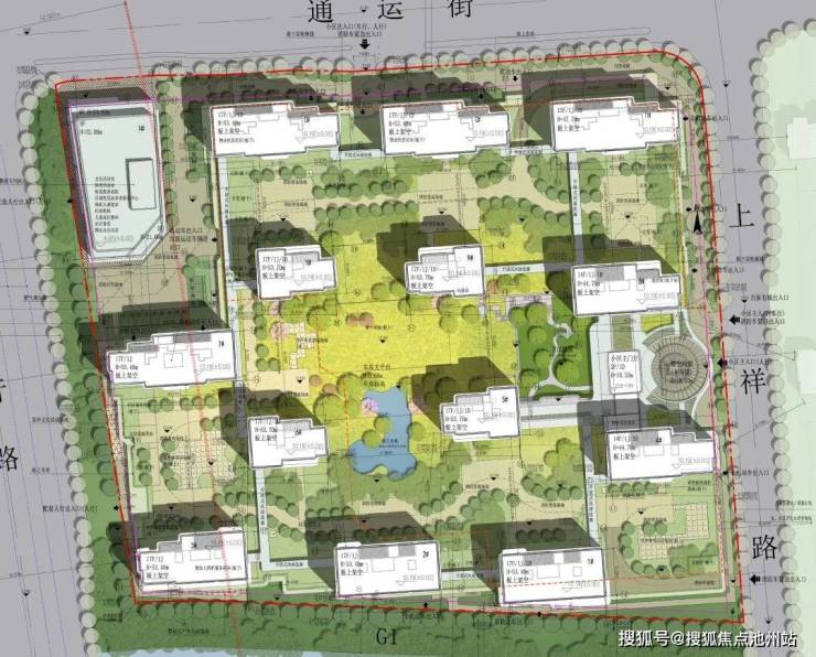 整体楼间距范围在30-40米左右,配套公建位于小区西北角,小区主入口则设于小区东侧上祥路。