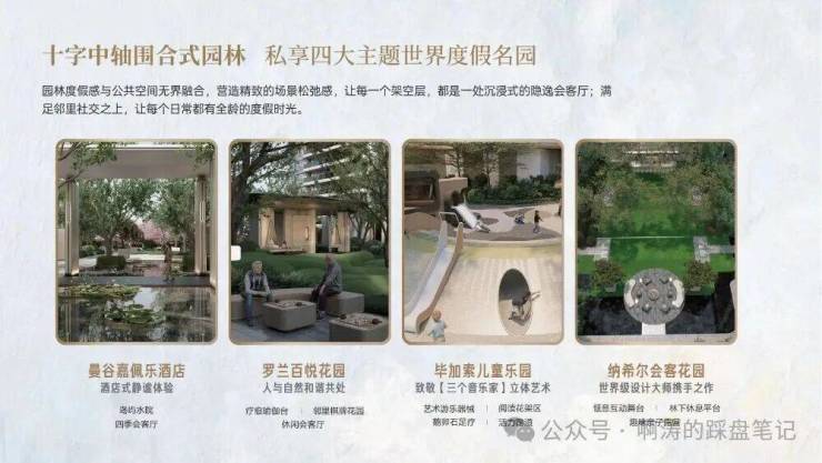 ►围合式花园,四大主题景观,纳希尔会客厅、度假风格水景,艺术与自然交融。