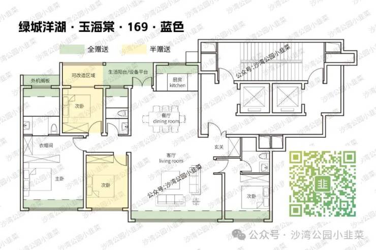 灵活性拉满,这点客观来说要给绿城的细心点赞。如果还想要带详细尺寸的户型图欢迎来本文末尾找我。