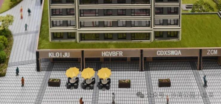 首先可以得知的是绿城玉海棠会做人车分流。笔者在总图发布时的文章里就已经预测绿城会将下沉式景观与落客区结合来做,现在模型展出,基本符合先前的判断。