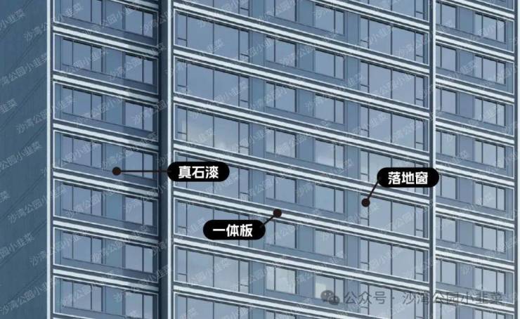首先是外立面,有老粉应该会发现和早期笔者在xhs上剧透的造型是基本一致。这里咱们主要分析一下南立面,绿城这里用到的材料主要是:一体板、真石漆以及玻璃门窗。