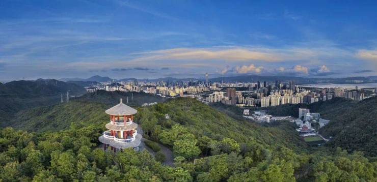 最低密的山海环城公园带:三山六公园环绕,背靠塘朗山、安托山、燕晗山,30KM山海环城公园带,近20余万平米山体公园。