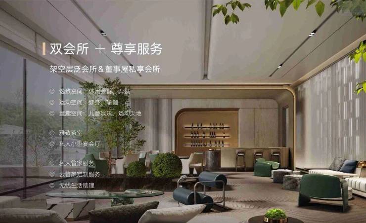 8、定制服务:私人管家定制双会所服务配套 打造塔尖人物际会厅生活健康双重会所满足业主健身、私宴、休闲会客等生活、商务需求;定制金牌物业团队,用心服务,量身定制塔尖人物的雅致生活。