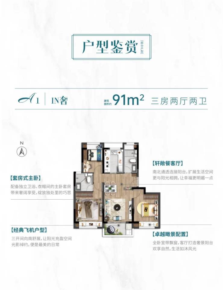 建面约91㎡洋房,区别于市场传统2房格局,以极高的空间利用率,做到百平以内3房2卫配置,为新婚家庭和小太阳之家定制总价友好型品质家。