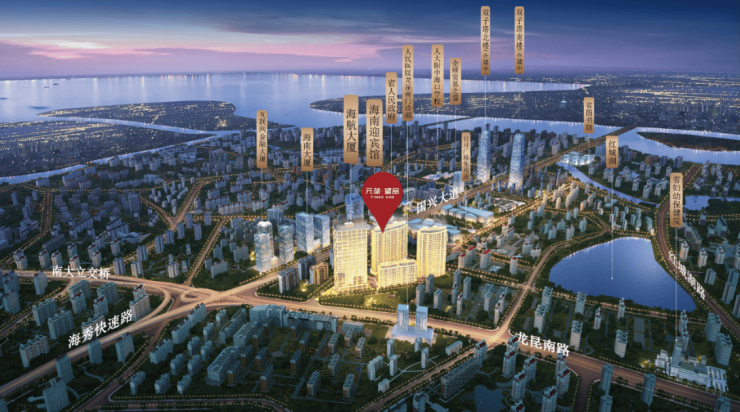 3大城市主干道:国兴大道、龙昆南路、海秀快速路交汇,约4公里可达国贸老城区、海口东站、汽车客运总站,5公里辐射海口核心商圈,经机场联络线约20公里到达美兰国际机场。