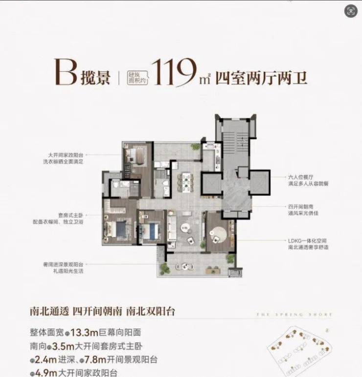 7大场景营造:一体化社交空间(LDKG)、多元交互餐厨、百变M空间、场景化儿童房、全功能主卧、复合情景飘窗、功能阳光空间