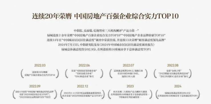 绿城历经30年的发展,绿城中国总资产规模超 5300 亿元,净资产规模超 1000 亿元,“绿城”品牌价值 1188 亿元,并连续20年荣膺“中国房地产百强企业综合实力TOP10”,绿城始终坚持对理想生活的追求,营造美丽建筑,创造美好生活。(信息来源:绿城官方,数据截至2025年1月)