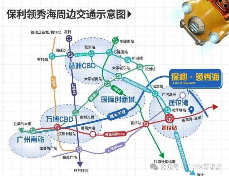 莲花山枢纽站,3站可以直达琶洲,出行成本多少先不说,靠城轨通勤其实也是不现实的,因为城轨不像地铁那样班次频密,这一点可以参考一下新塘的穗莞深。