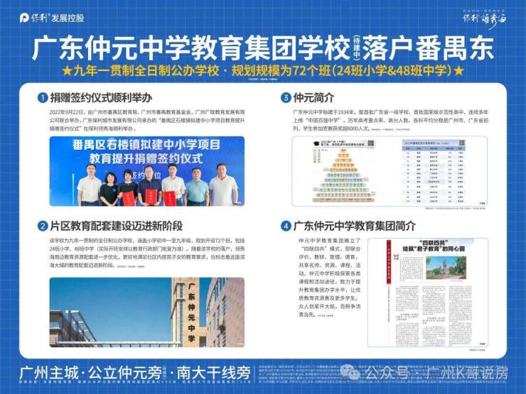 保利领秀海已划入【仲元学校】学区范围,规划开设72班,包括24班小学、48班中学,2025年9月开学。