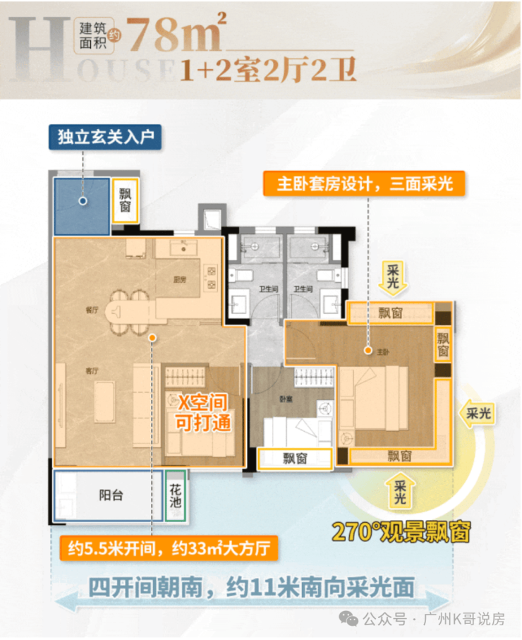 ①四开间朝南,超11米南向采光面