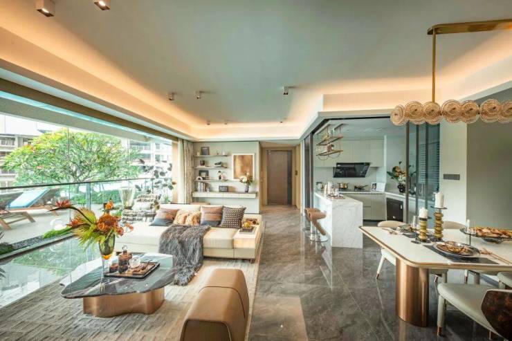 天河麓誉府将自然景观与现代设计巧妙结合,打造了一个静谧的半山园林社区。项目设计考虑到山体地形的优势,采用台地式半山园林,抬高10米的设计让社区更贴近自然,远离城市喧嚣,静享山景。此外,项目的建筑立面采用三段式设计,融合大面积玻璃外墙与高窗地比,带来更多自然光线的同时,也让每一位住户都能欣赏到美丽的山景。结合智能家居系统和高品质精装,天河麓誉府为居民提供了一个理想的“山居生活”场景。