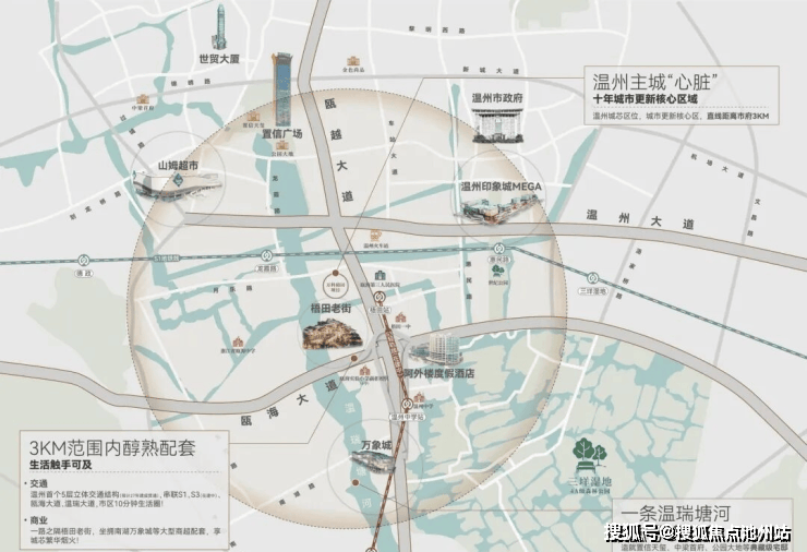 璞拾云洲位于城芯黄金中轴区位,北接醇熟老城,西邻瓯海中心区,东靠行政枢纽中央绿轴,南迎南湖板块,是多个重点板块的交汇要地,也必将汇聚每一个板块的发展红利。