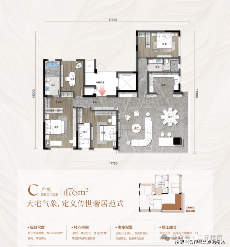 从这个设计来看,很可能是173㎡户型单独在一侧。