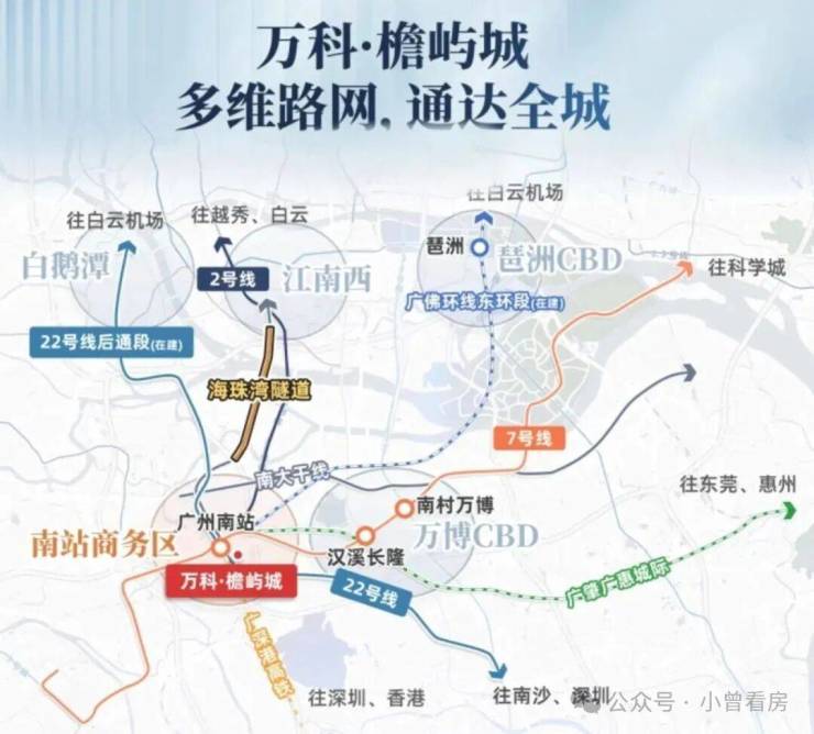未来东晓南路-广州南站连接线、海珠湾隧道通车后,与海珠、珠江新城的通勤时间将进一步缩短,1小时可达湾区核心城市。