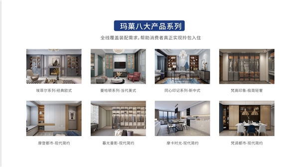 玛菓整装集成家居专注提供更适合整装的产品解决方案、更适合整装的销售设计方式以及更适合整装的交付服务方式;整装无疑是装企实现标准化复制,跨地域连锁的较佳方式,在复制扩张的进程中,提供多种交付服务解决方案,满足各阶段发展需求。