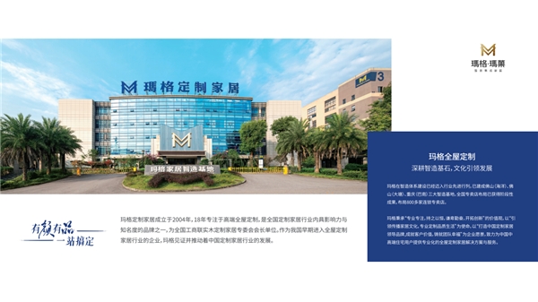 玛格定制家居成立于2004年,18年专注于高端全屋定制赛道。拥有先进的研发设计创新能力,致力于为用户营造较佳的居住体验,推动现代家居文化的发展,并且设有广州、佛山、重庆三大研发中心,获得国家专利200余项等。十八年的沉淀,玛格坚持 “以市场为引导,以用户为核心”原则,为用户提供满意的全屋家居一站式解决方案与服务。