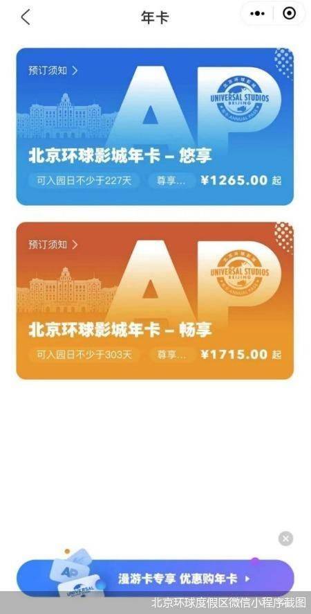 对比之下,北京环球影城年卡售价处于低位。