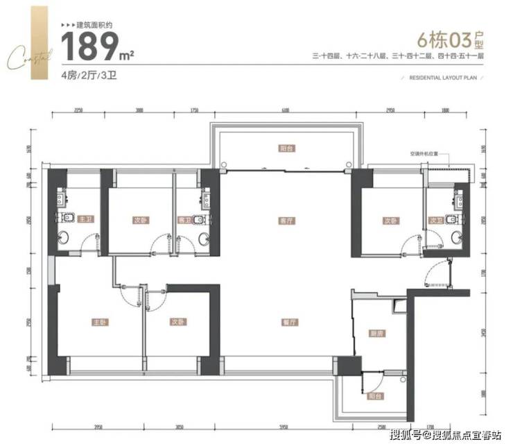 超16米东南采光面,阳台超7米宽;主卧进深4.5米,L型飘窗可270度景观。