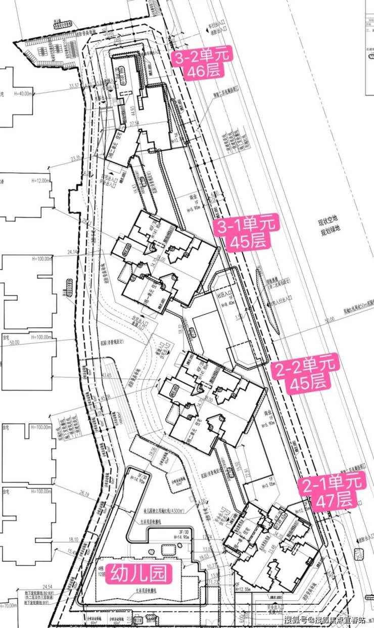 规划建设4栋(45-47层)超高层住宅和1所幼儿园,该地块为纯商品房,总户数为1098户,机动停车位1309个。