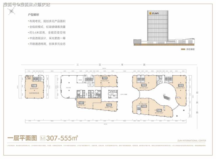凤凰海岸单元——三亚中央商务区核芯片区,定位为旅游港自贸服务与邮轮、游艇、文化艺术综合消费区。紫金国际中心落位于此,匠造建面约6万方三亚湾芯·滨海都会综合体,实现区域城市服务、旅游文化、总部经济等产业资源全覆盖。