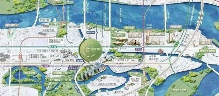 保利湖光悦色位于海珠区华洲路旁,西侧紧邻广州海珠湿地公园,南面向石榴岗河。这一位置巧妙地平衡了城市繁华与自然静谧——左邻成熟生活区,右接发展潜力十足的琶洲板块。
