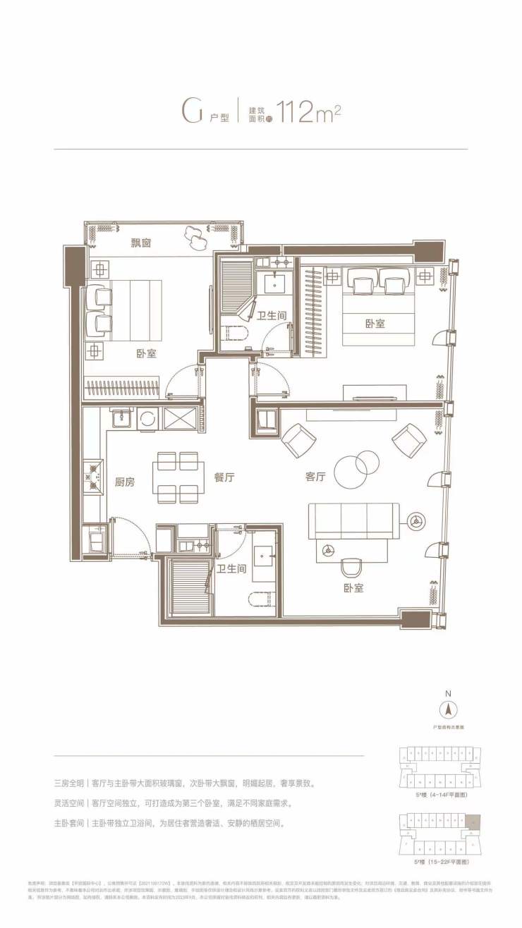 三卧设计|满足多人家庭空间需求,可灵动规制书房或衣帽间,奢享精致生活。