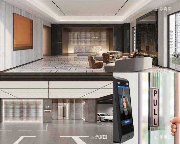 8.公区奢装:六大全智能化安保系统,高标准打造首层奢享大堂、车库臻装大堂、人脸识别入户等多重归家礼序,尽显名邸气度与生活仪式感。