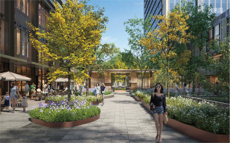 时尚生活中心,闹中取静,打造绿地空间、社交餐饮、户外运动等越界融合的时髦范本。