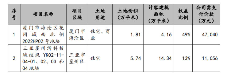 自2022年10月销售及购地情况简报披露以来,招商蛇口新增两个项目。分别为厦门市海沧区花园城西北侧2022HP02号地块、三亚崖州湾科技城控规YK02-11-04-01、02、03和04地块。
