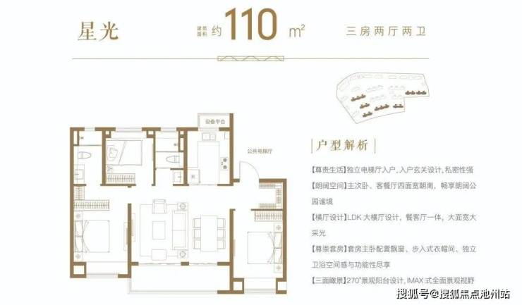 再来看一下项目建面约110㎡的洋房户型,三房两厅两卫设计。