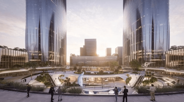 写字楼:200 米超高层双子塔(2 栋),超甲级