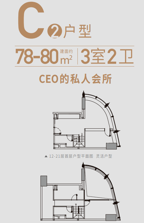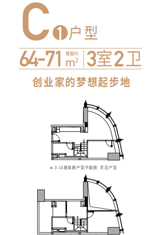 户型:C1/C2 栋:4.5米LOFT为主,6 梯 24 户,48–115㎡,可办公/居住