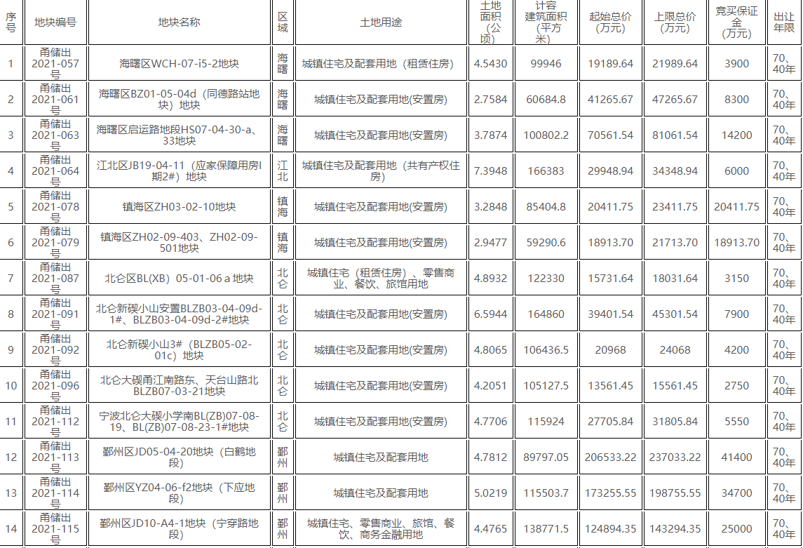 宁波第三轮集中供地挂牌38宗地块 总起价约231亿元