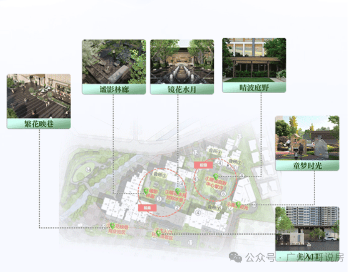 项目自身规划约40万㎡四大滨水商业街区,约700米处万科规划有18万㎡的理想花地商业,周边现有的有芳和荟购物广场,荔胜广百等商圈。
