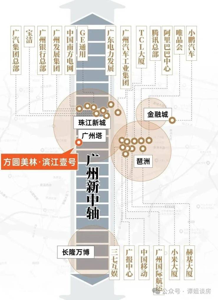广州新中轴,不仅承担着CBD功能(珠江新城&琶洲),还承担着全市商业中心(广州塔南广场商圈、天河路商圈)、国际交往中心(拥有50多外国总领事馆)、高等教育中心(全市7所双一流大学占了4个)等功能,