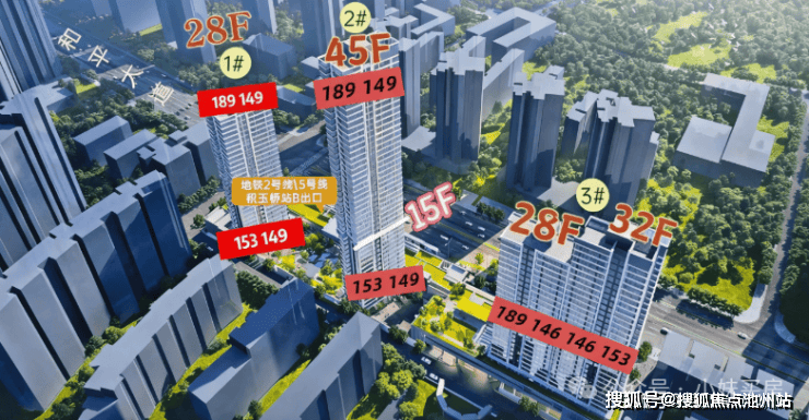 项目共规划3栋住宅,1号楼是1个单元,总高28层;2号楼也是1个单元,总高45层;3号楼:2个单元,总高分别为28层、32层。