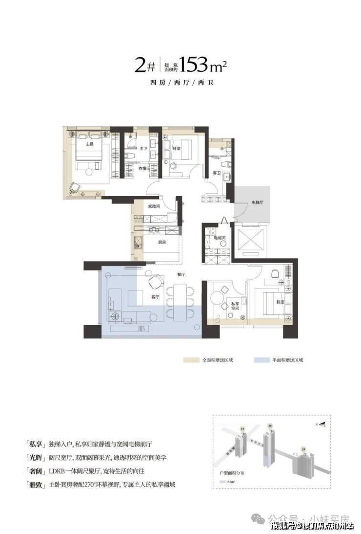 ②149平户型,能做到四房配置,能满足三代同堂或多孩家庭的居住需求,功能分区也清晰明确。