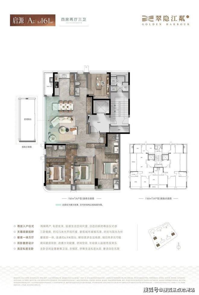项目一共有三个户型,分别为161㎡、180㎡和230㎡三种户型。起步就是161㎡的四房两厅三卫,是纯粹的高端改善盘。