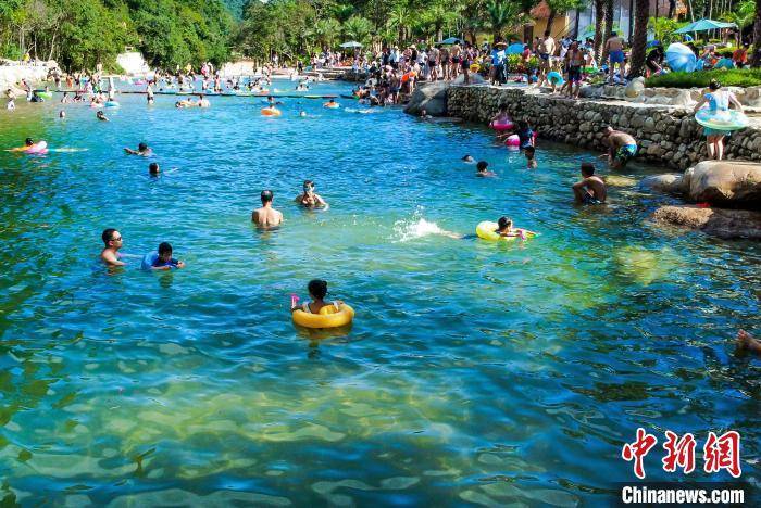 图为游客在广西贺州市姑婆山旅游区体验温泉度假之旅。 贺州姑婆山旅游区供图