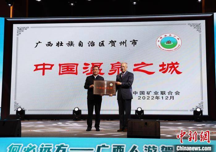当天,中国矿业联合会向贺州市人民政府颁发“中国温泉之城”牌匾。贺州市成为广西壮族自治区首个“中国温泉之城”。