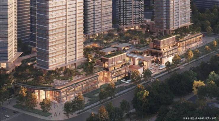 中心庭院:立体叠落园林系统,让绿意自地面向上延伸,峡谷式叠景园林和盖上观景平台等设计,形成多层次的自然交互场景。