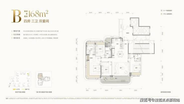 - 168㎡四房三卫(双套间)通透B户型