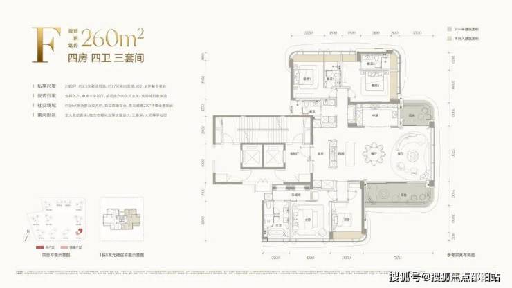约260㎡四房四卫(三套间)全景舱F户型