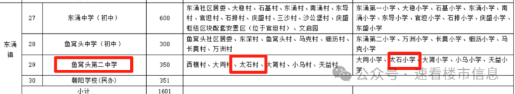目前项目所处的东涌镇太石村,中小学按今年的街道划分的话,是太石小学和鱼窝头第二中学!