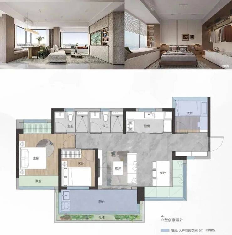 94㎡4房2厅2卫高拓展入户花园,四开间朝南,南北对流,餐厨一体化设计,舒适安逸,主卧套房设计,270°瞰景飘窗。